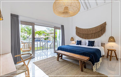 Measure 25 sqm in size, this air conditioner room come with 1 large double bed, a private bathroom as well as balcony with pool and garden views.